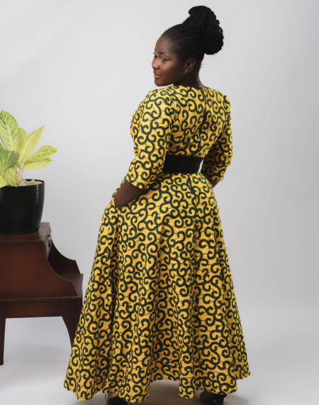 Introducing our exquisite Zaila Ankara Skirt Maxi Dress. This dress showcases the beauty of African print with its stunning long skirt, against a vibrant yellow top. Here showcasing Ankara fabric in a stylish and eye-catching manner.