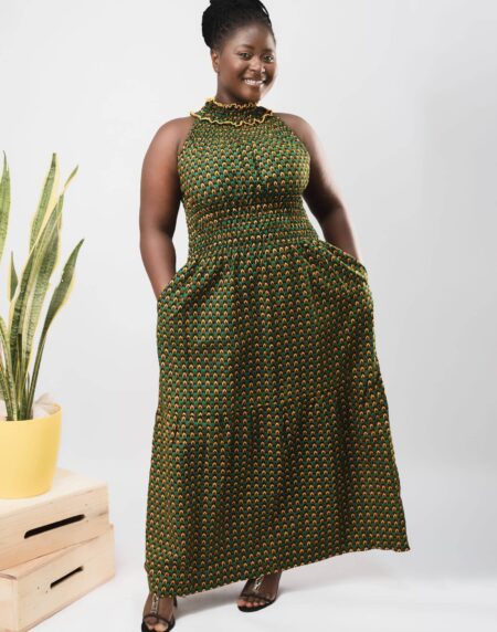 Spice up your seasonal wardrobe with this chic, Dark Green Ankara High-neck Halter Maxi!  Pair with heels for occasions or sandals for a casual look.