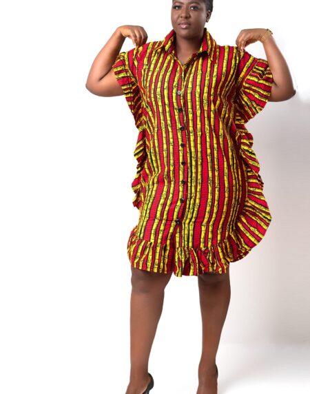 For every event, this Sura Ankara African Print Shirt Dress With Flared Trim is simple to wear and can be dressed up or down. It is simple to wear because to the shirt-style and the relaxed fit. Additionally, the flared sleeves are comfortable because they are loose around the arms.