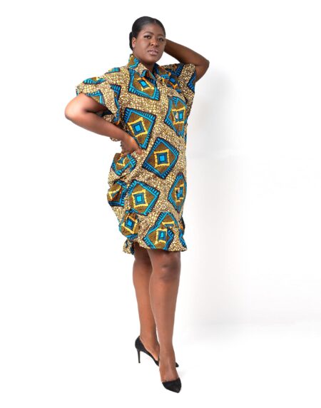 This Makeba Ankara African Print Shirt Style Mini Dress With Balloon Sleeves is the perfect piece of that event or to help brighten up your wardrobe.The balloon style sleeves help to set a unique look as well as being comfortable.The collar style helps to give an elegant look and the