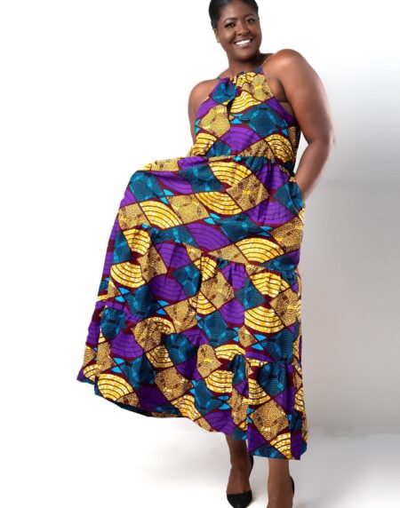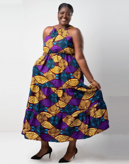 This flattering Thandiwe Ankara Multi Halterneck Maxi Dress is perfect for that garden party of for any occasion of your choice ! The halter neck style with high back gives a flattering look as well as being comfortable. The wide full length skirt allows for comfort in movement as well
