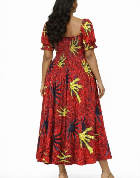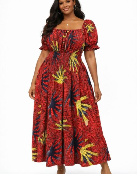 Elegant African print maxi dress made from breathable cotton. A flowing, timeless design perfect for casual, formal, and cultural occasions.