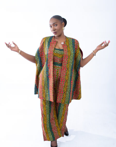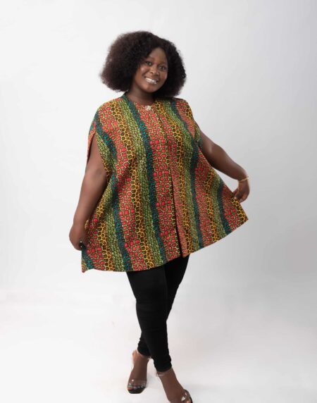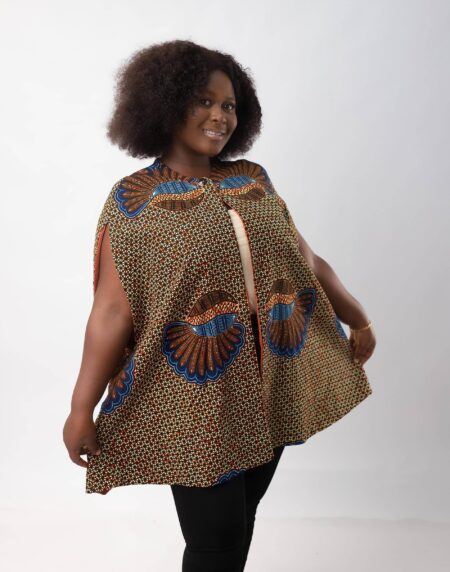 Introducing our Sina Ankara Cape Style Coat for women, a fashion-forward masterpiece that seamlessly merges tradition with contemporary style