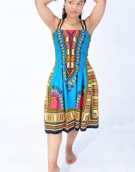 Vibrant Sarah Strap Dashiki Swing Dress Blue