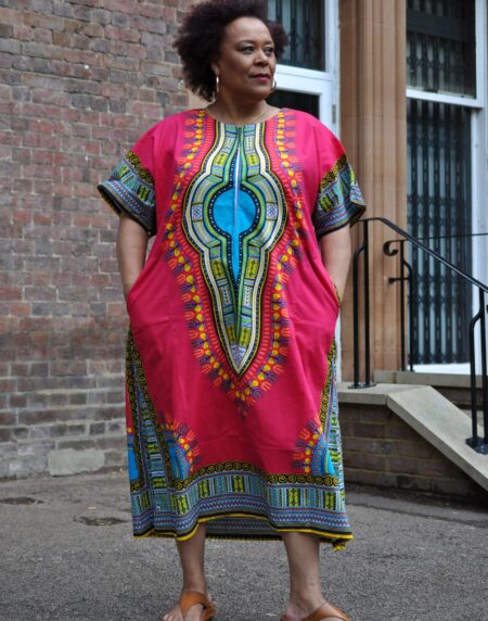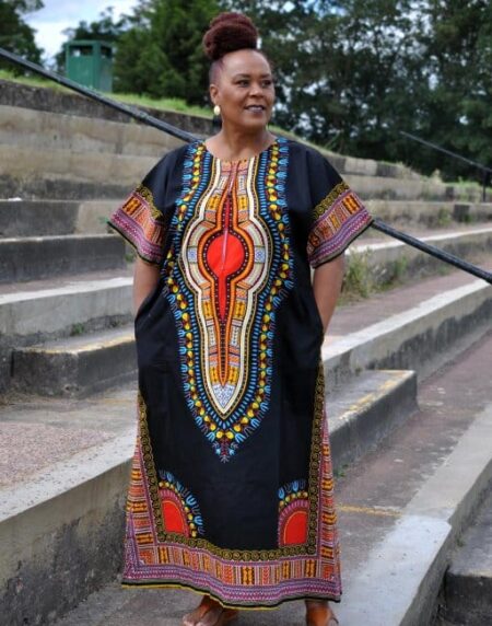 e super comfortable but elegant in this beautiful, one size fits all, ladies Dashiki Kaftan Zip Front Maxi Dress!