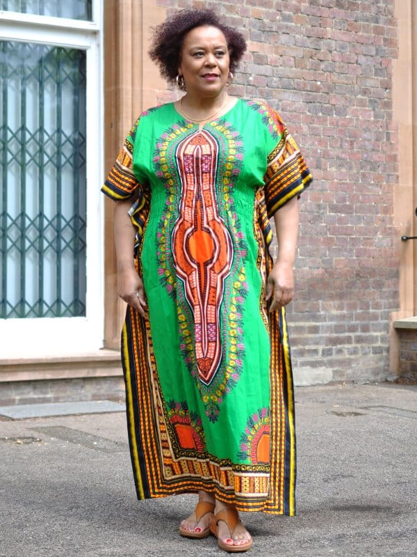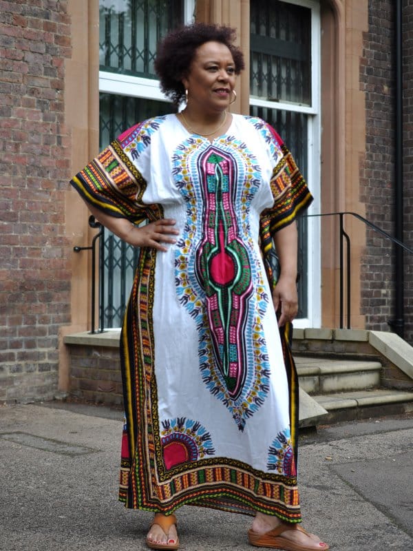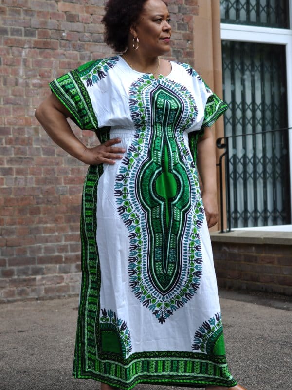 Be super comfortable but elegant in this beautiful, one size fits all, Dashiki Kaftan Maxi Dress!  Furthermore, it is loose fitting with an elasticated waist for a flattering fit. Perfect for strolling in the sunshine, chilling at home or at the beach. You can use it as cover up for swim wear and then pair it with heels for that lunch with friends! Available in one size which fits almost everyone including plus size!
