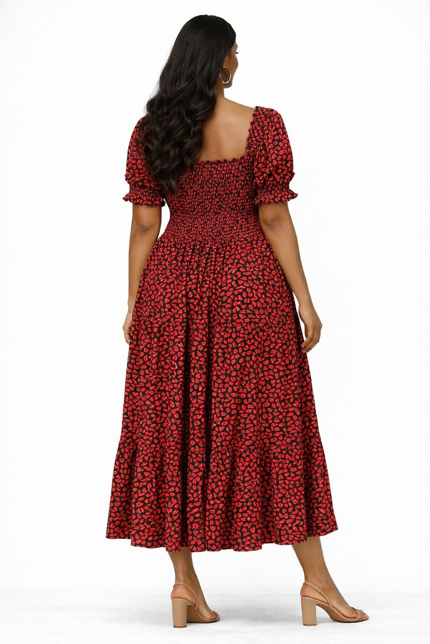 Women’s African Print Smocked Maxi Dress – Red & Black Geometric