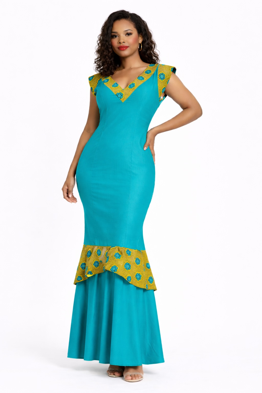 Crafted from authentic African wax print cotton, the bold patterns and vibrant colors celebrate tradition and individuality. Lightweight and breathable, this dress is perfect for warm weather while delivering a refined, standout look wherever you go.