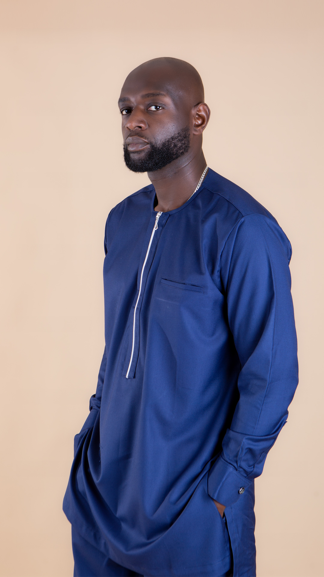 Step into elegance with our Alluring Navy Traditional Suit, a perfect fusion of classic style and modern sophistication. Moreover, it crafted from high-quality fabric, this stunning ensemble features a striking silver zip that adds a contemporary touch to the rich navy hue.