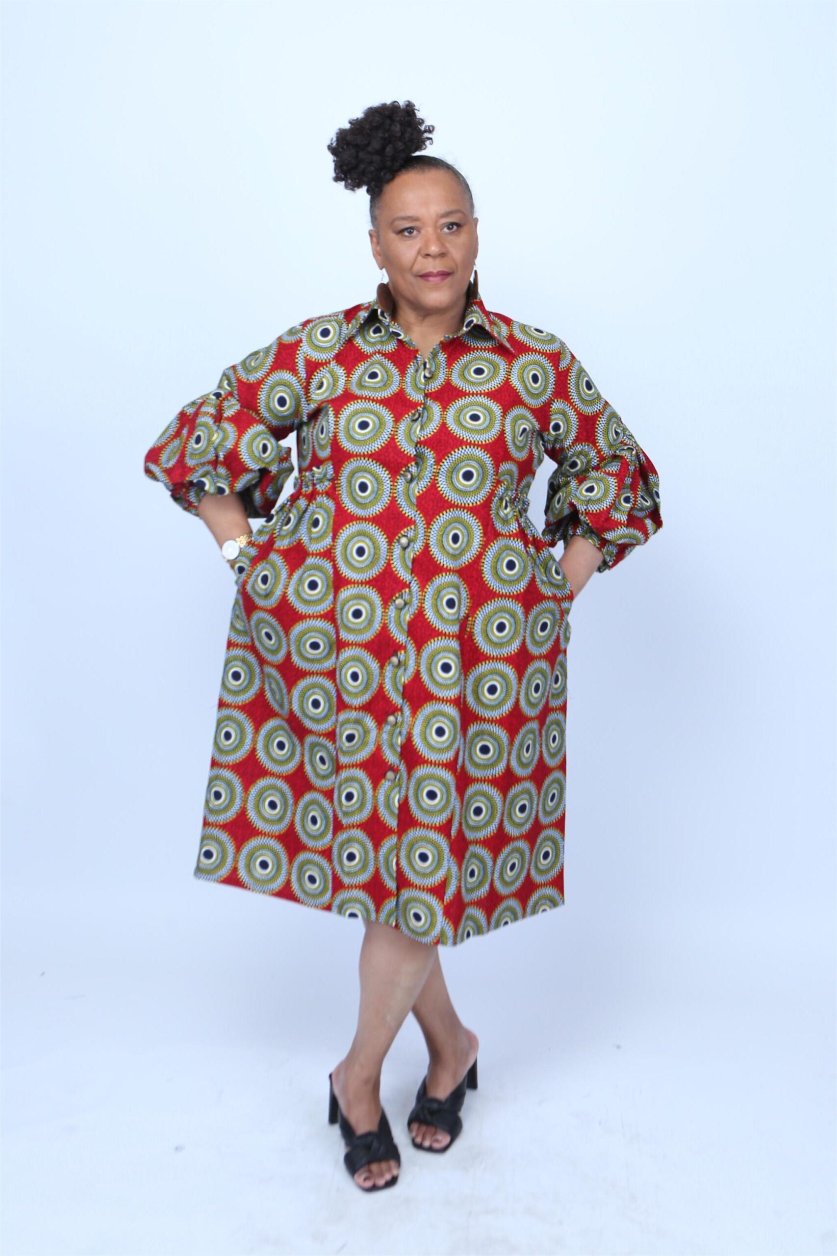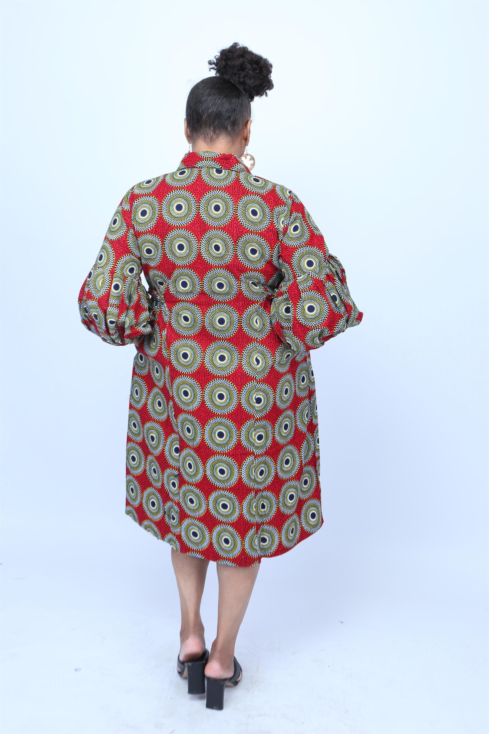 If you like this Shirt Style Mini Dress With Balloon Sleeves then you may also like our Destiny Ankara African Print Shirt Dress With Flared Trim