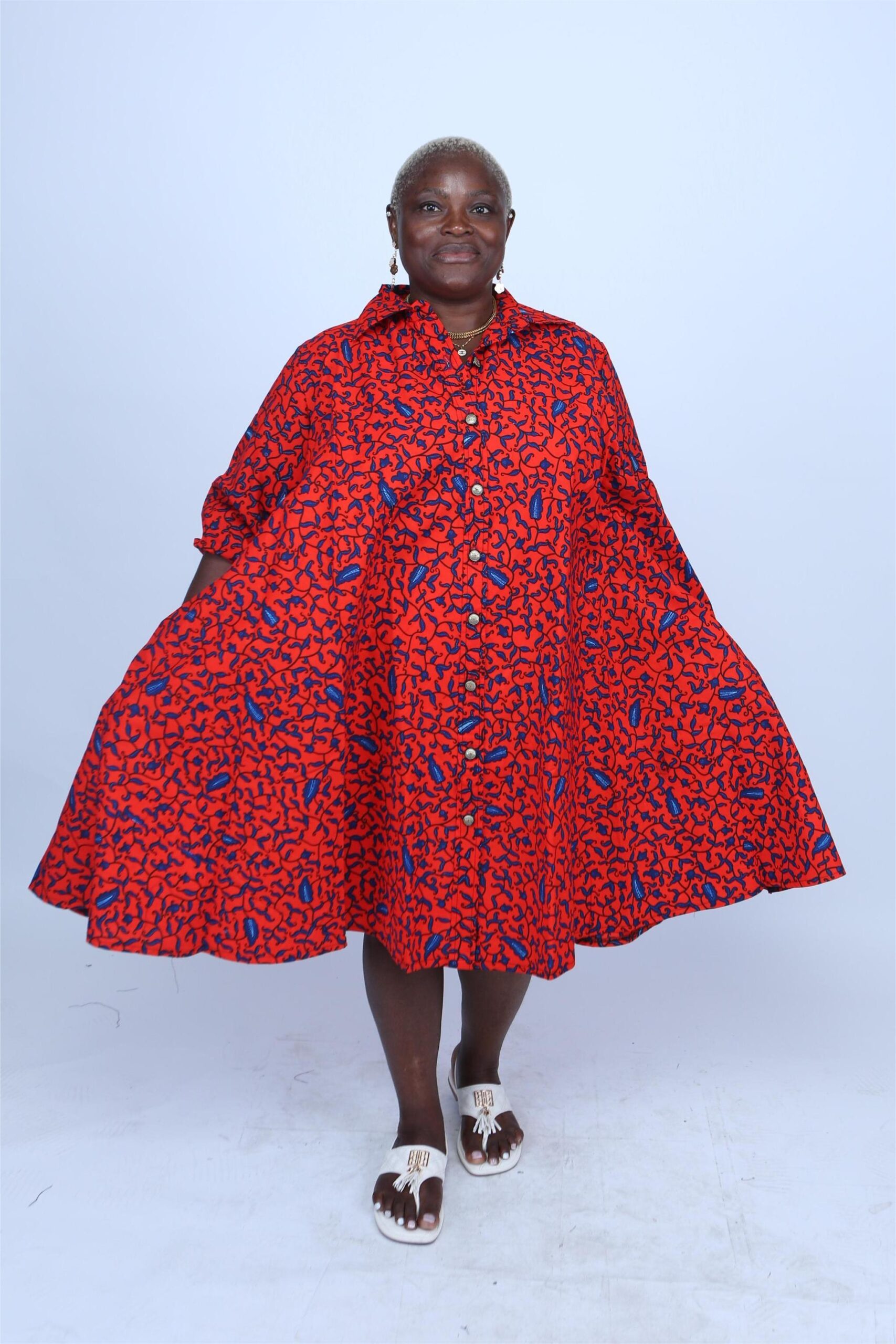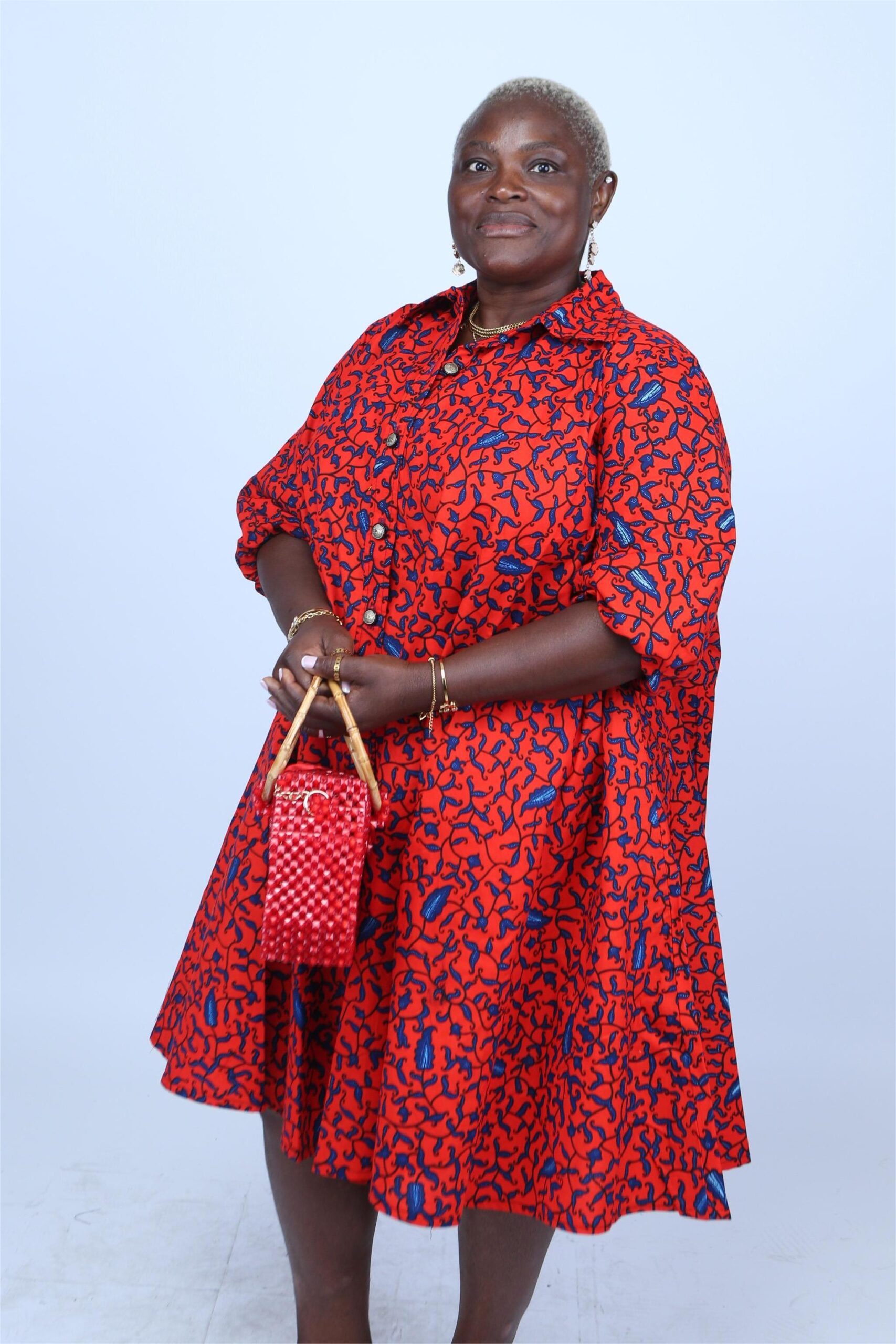 Ankara Plus Size Red African Print Shirt Style Dress is the perfect piece of that event or to help brighten up your wardrobe. The shirt style sleeves help to set a unique look as well as being practical .The collar style helps to give an elegant look and the dress style has buttons, can be dressed up or down and can be styled with a belt or accessories.