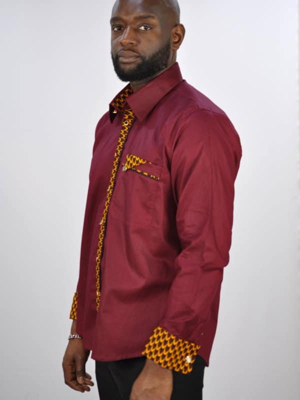This Badru Ankara Mixed Print Wine Smart Shirt is the perfect smart shirt for that special occasion.The Kente fusion mix of wine polished cotton and kente helps to set that unique yet stylish look!