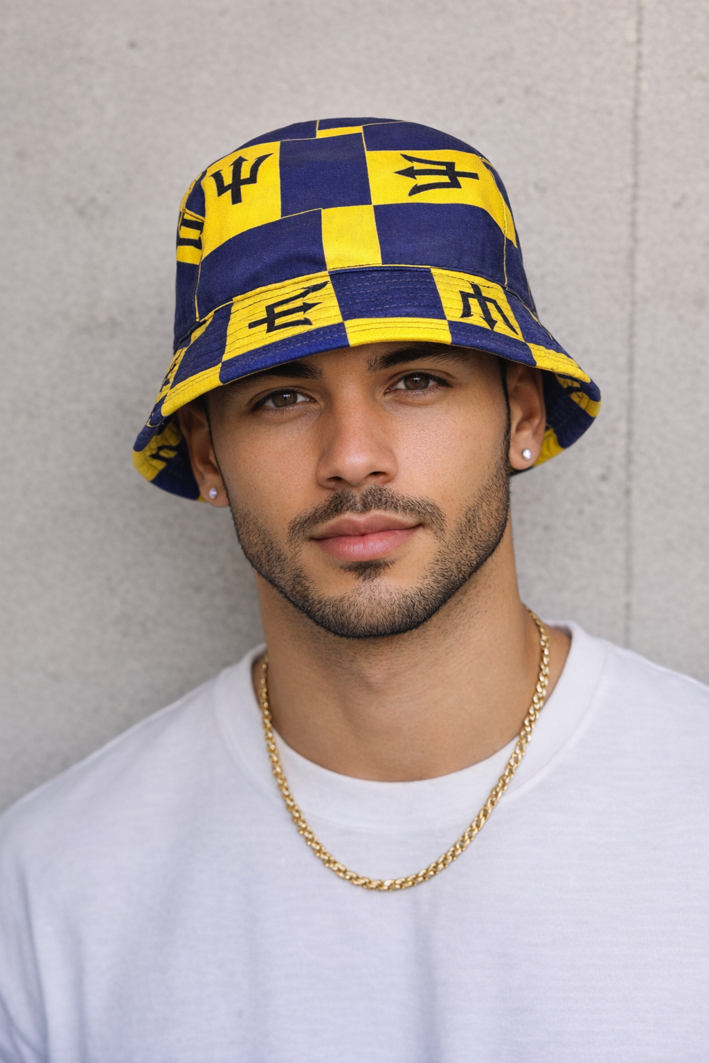 Show off your Bajan pride with this Barbados Reversible Bucket Hat; crafted for sun, style, and versatility. One side features bold colors and symbols inspired by the Barbados flag, including deep ultramarine blue, gold, and the iconic broken trident. Flip it for a more neutral, low-key look when you want to keep it cool and casual. Whether you’re beach-bound, exploring the streets of Bridgetown, or just bringing that Caribbean flair wherever you go, this hat has you covered literally and stylishly.