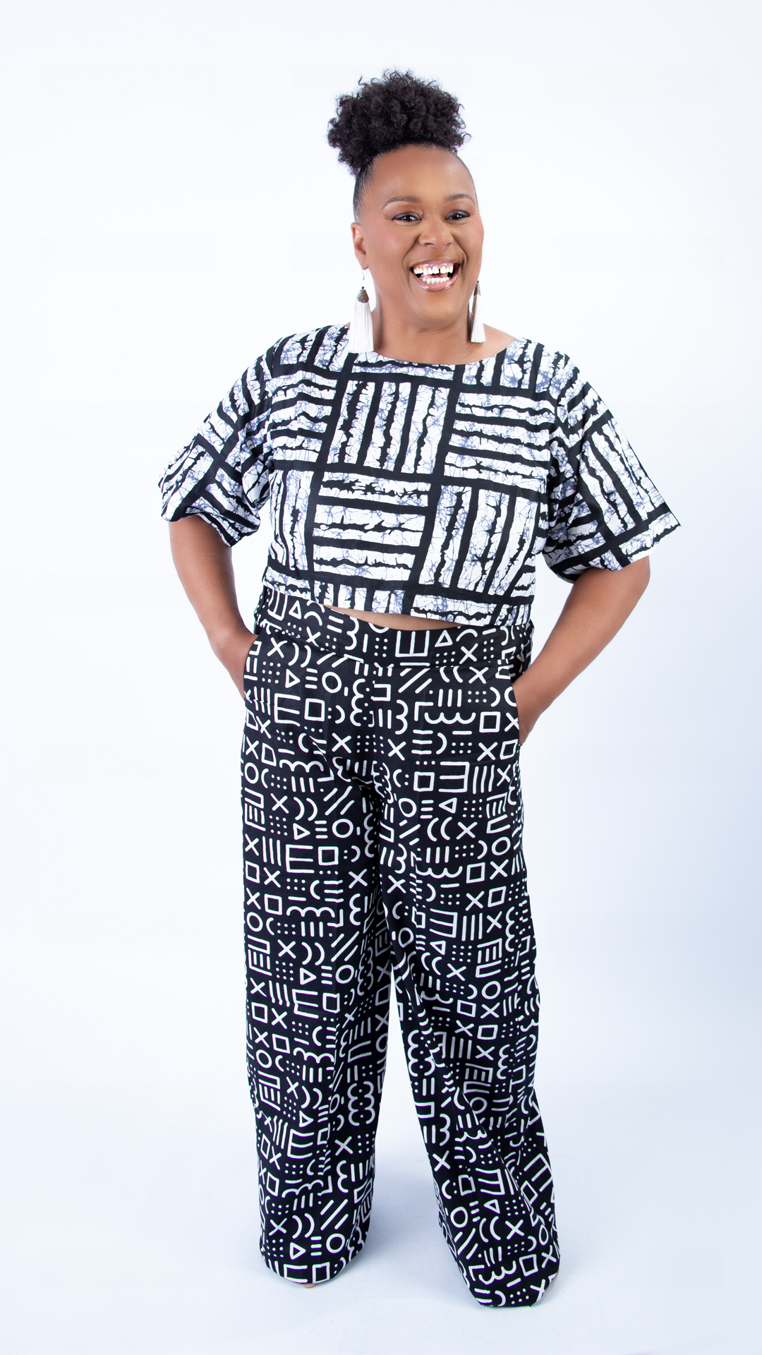 If you like this Beautiful Black and White Ankara Wide Leg Co-ord set, check out other cool African print outfits by JTAphrique on Instagram!