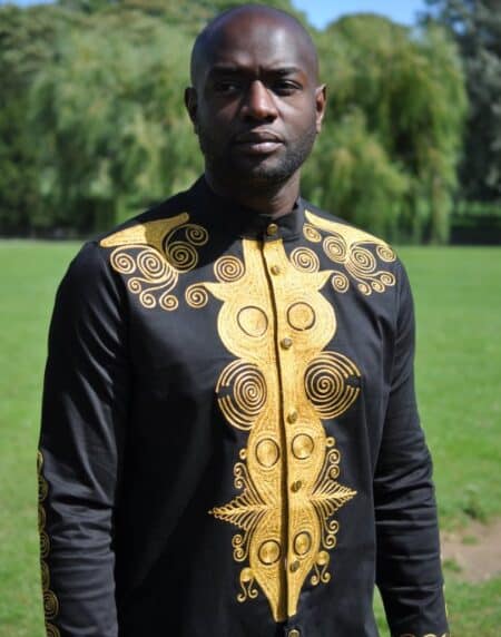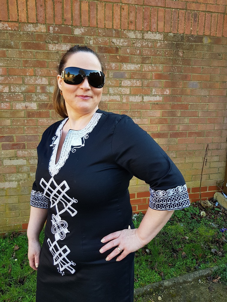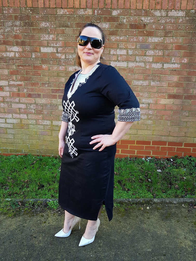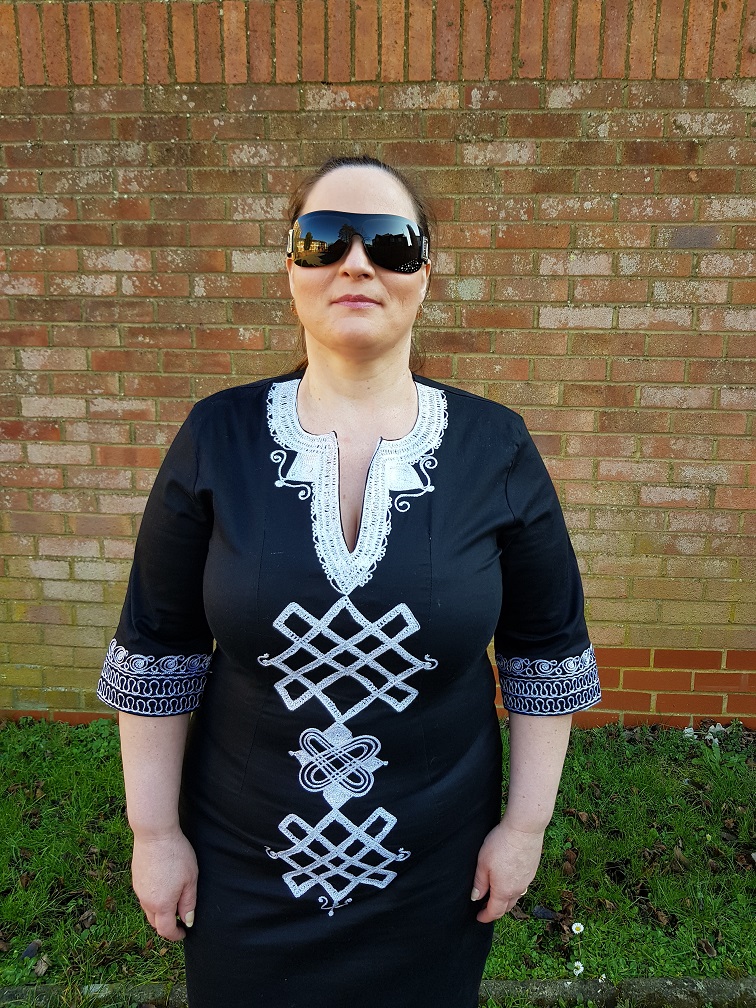 Make a statement with this one of a kind sheath dress! Featuring a slit neckline with striking embroidery detail, this shiny dress creates a lovely streamline shape. Made from luxury, polished Cotton, this dress creates a unique and extravagant look.