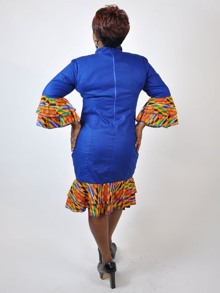 This Chipo African Kente Fusion Bodycon Flare Sleeve Dress is perfect if you’re going for fashion with comfort. With a beautiful bodycon fit, this dress will enhance any figure. Also the beautiful kente details of the sleeves and hem helps to give that unique look.Purchase as displayed or customise the design. Choose a different African print fabric or change the length