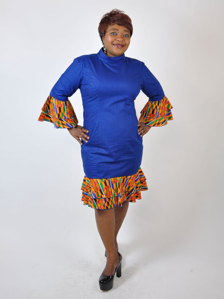 - Pattern Type: Plain Blue with kente fusion