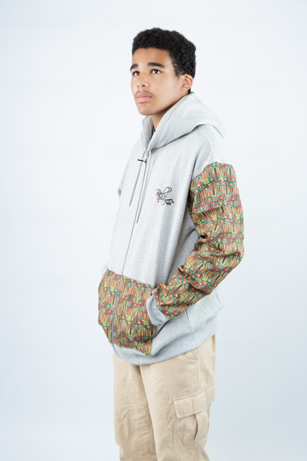 Whether you’re heading to a casual meetup, layering up for a cool-weather day, or simply looking for that standout piece that speaks to who you are — this zip hoodie delivers on every front. Its standout design is defined by vibrant African print fabric panels strategically placed on the sleeves and front pouch pocket, creating a balanced contrast that elevates the classic zip hoodie silhouette.