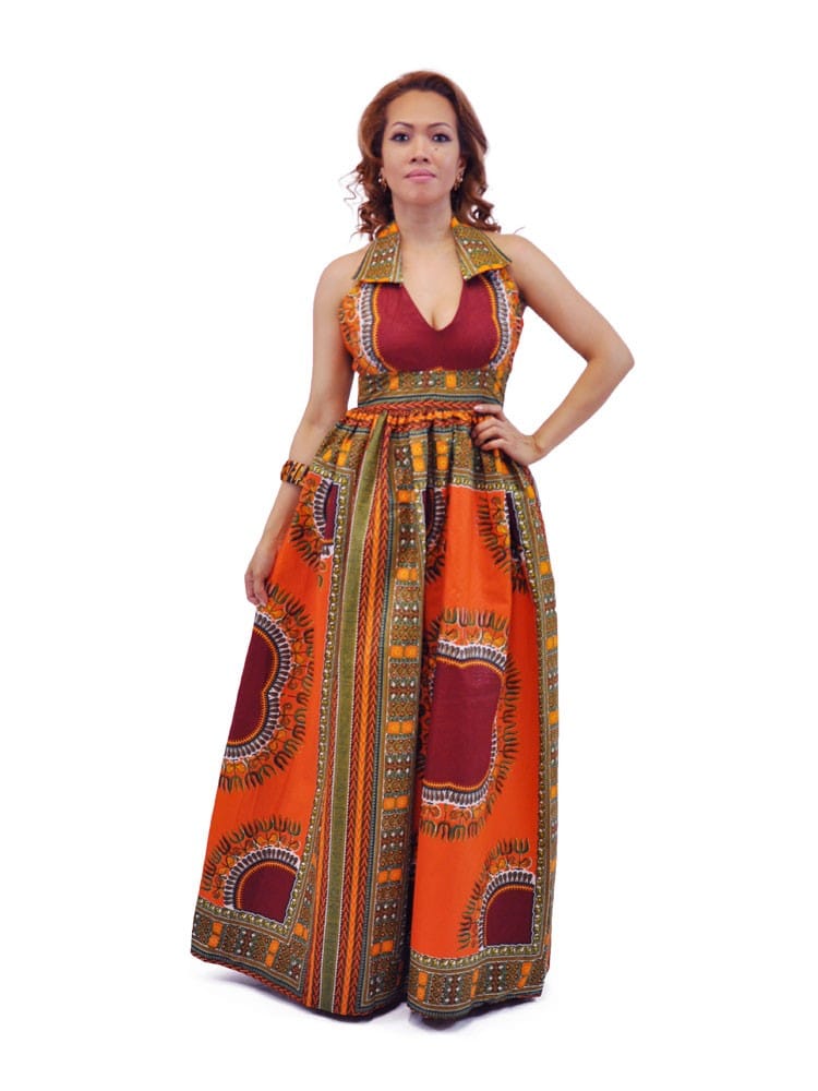 Please include your measurements with any custom made order for our Deep Orange African Dashiki Dress for best fit! Please use our size guide & measurement guide before ordering.