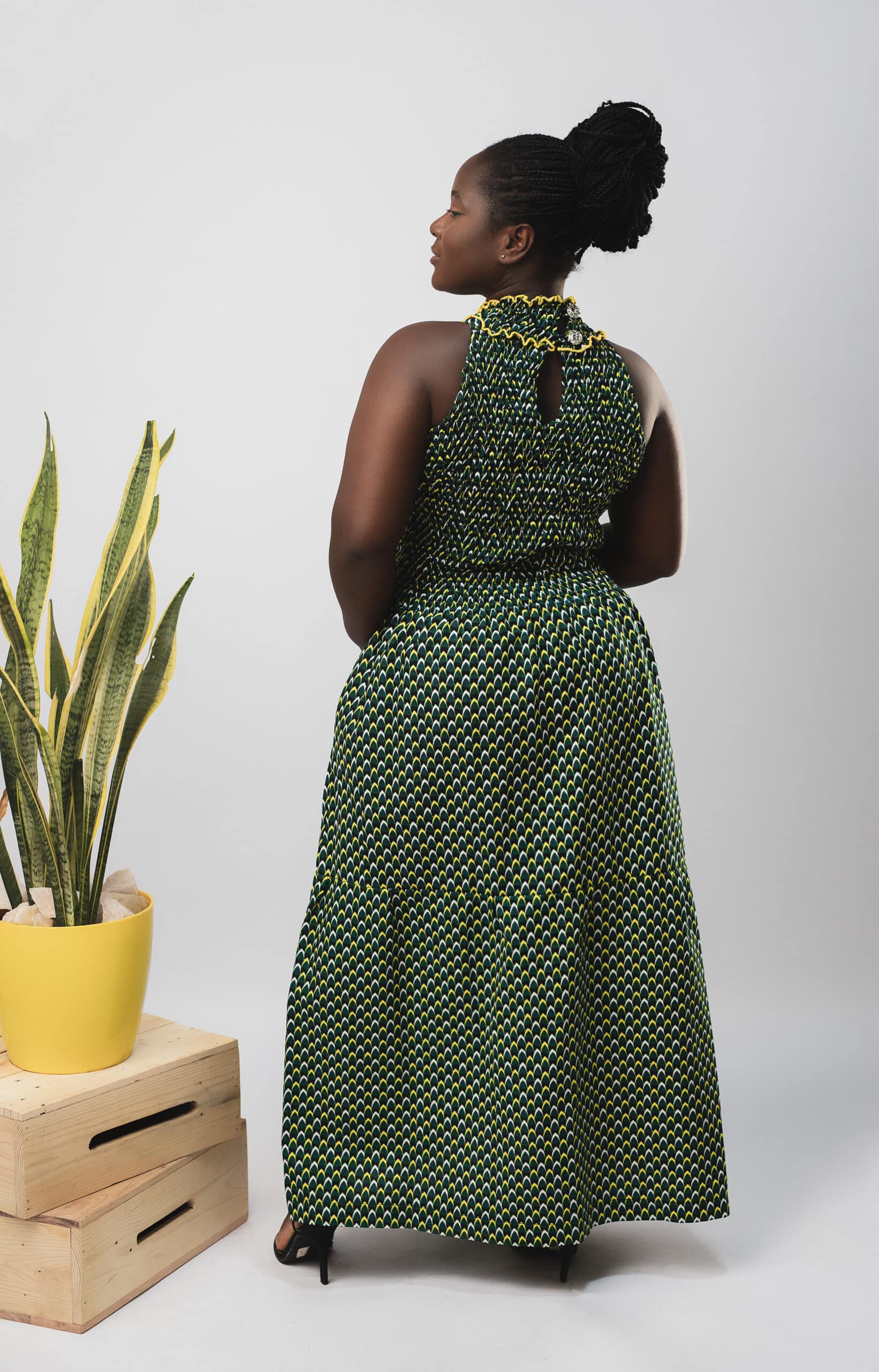 Unleash your confidence and showcase your bold sense of fashion with our exquisite Denise Mustard Halter Maxi. Embrace the beauty of African culture