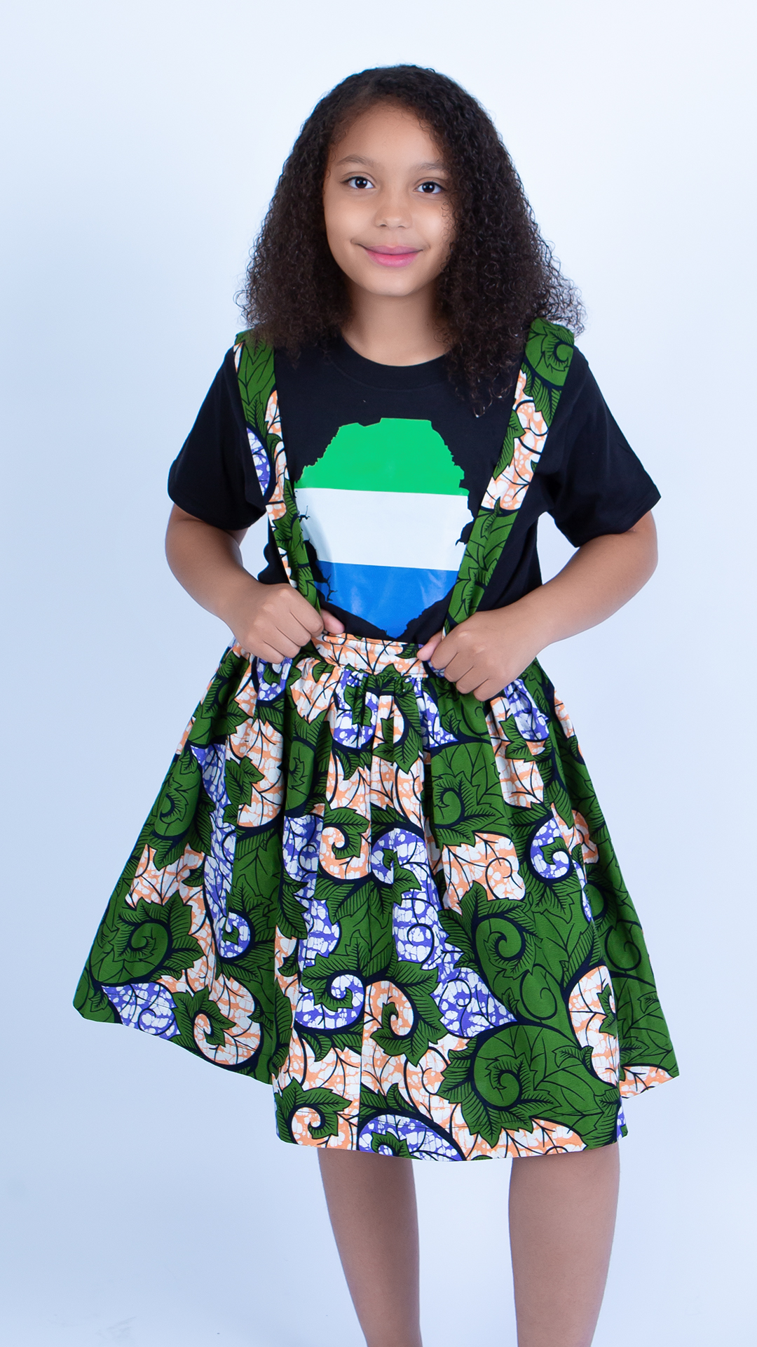 This harness-style Ankara skirt is more than just an outfit—it’s a fusion of cultural tradition and modern design, offering a look that’s as fun and unique as the child wearing it. With its bright patterns and innovative style, it’s the perfect choice for any young trendsetter looking to shine!