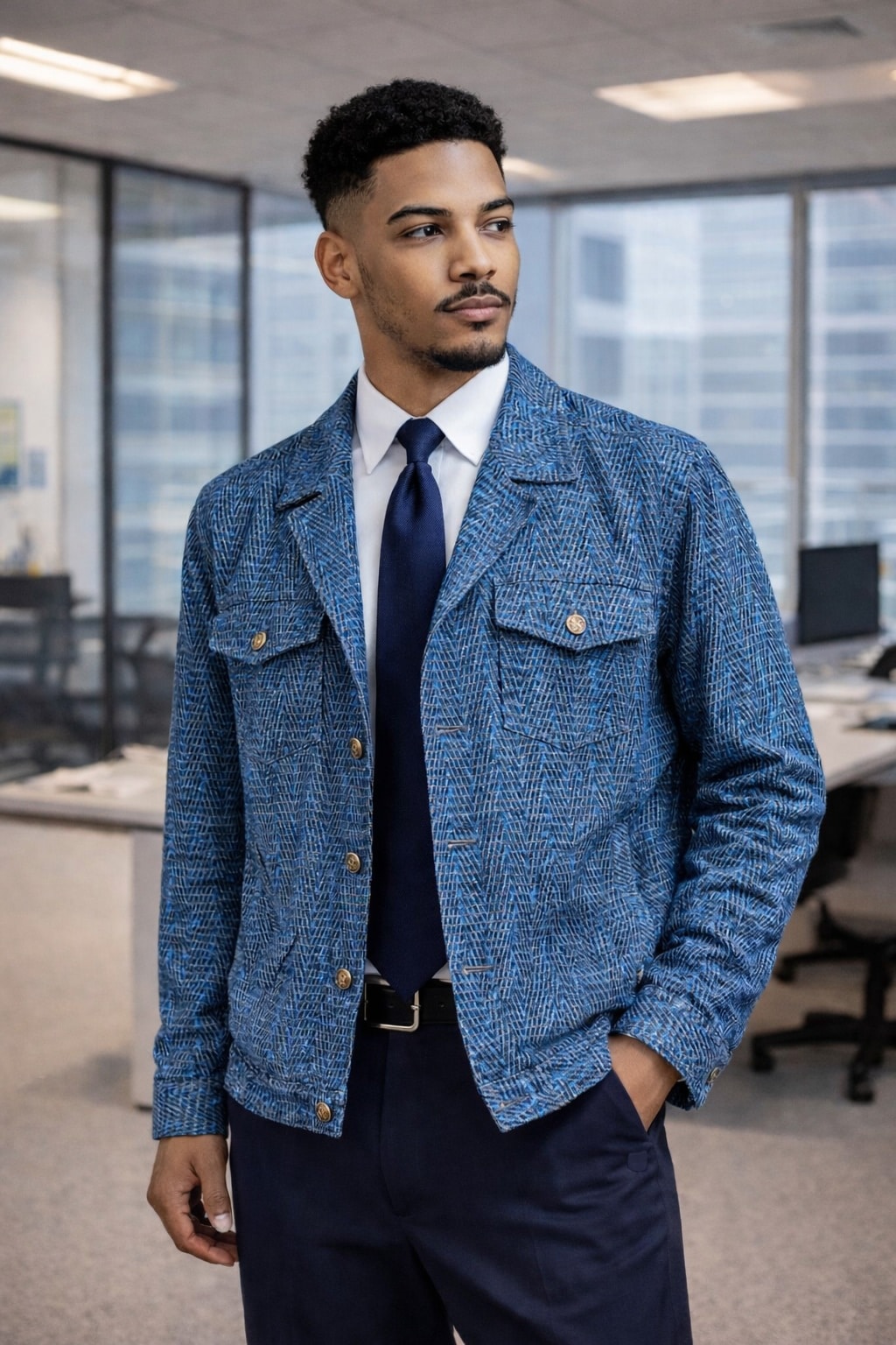 Stay polished and confident with this Heritage Blue Office Suit Jacket. It is modern, refined, and easy to wear. Designed for today’s professionals, this jacket combines classic tailoring with a textured fabric that adds subtle character. Its clean shape and sharp fit make it suitable for both formal and smart-casual looks.