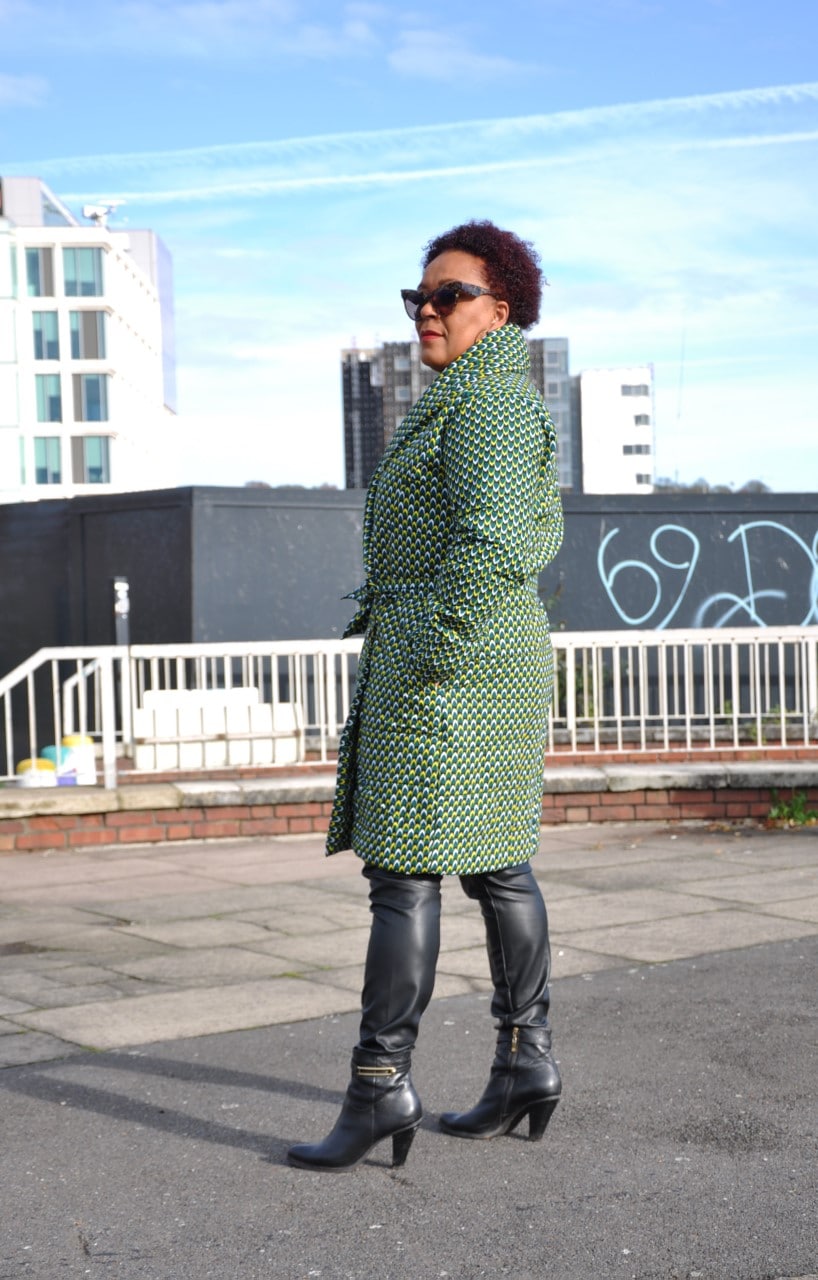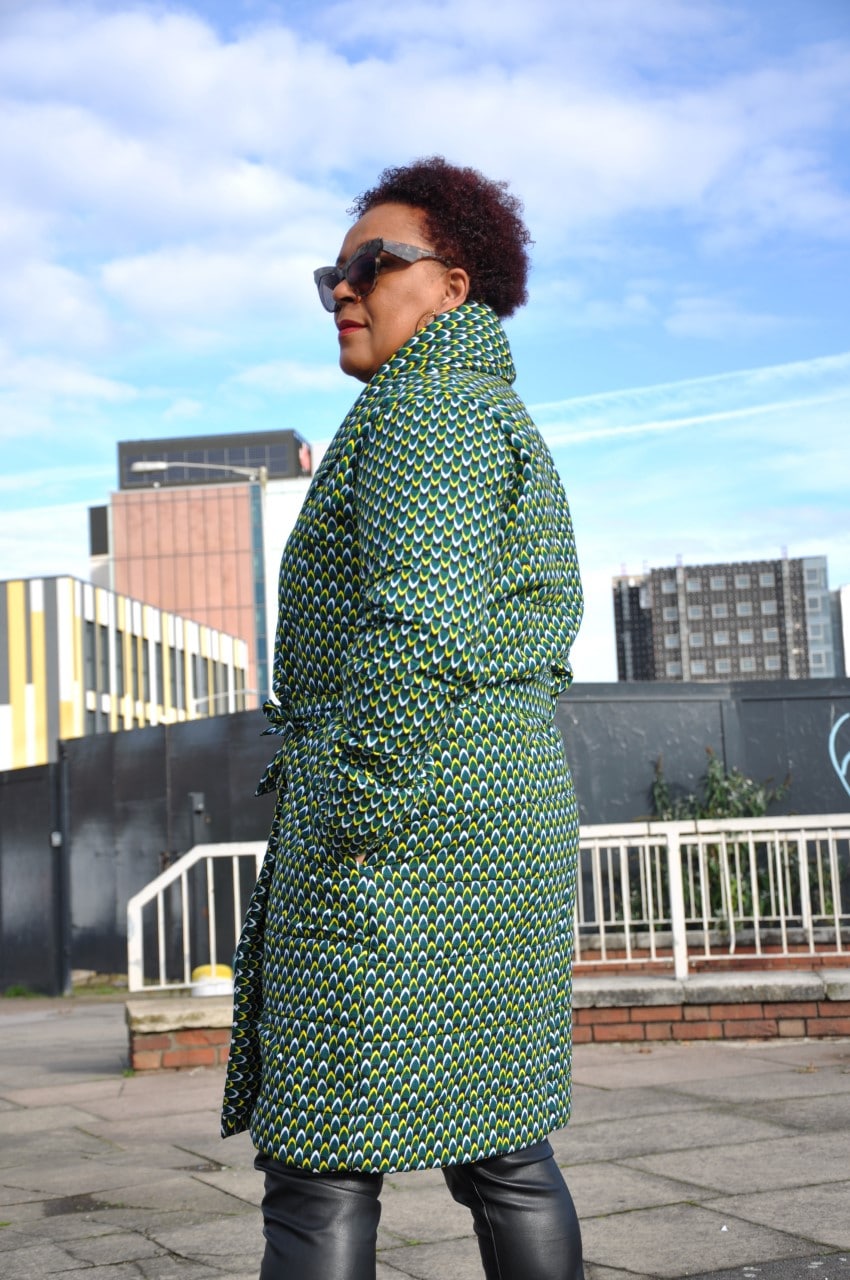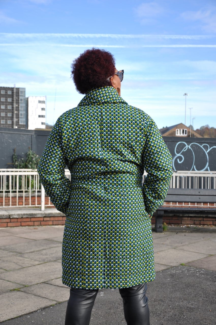 This ladies green African Ankara print coat is quilted to give you plenty of warmth this winter. Carefully designed to enhance the feminine figure, this sophisticated coat is a must-have for your winter wardrobe. This lovely ladies coat can be custom made to fit you perfectly. Just pop into your basket, add your measurements and we’ll do the rest!