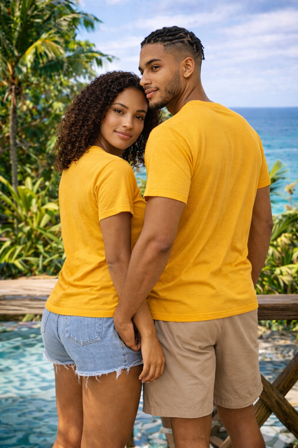 Crafted from soft, breathable cotton, the tee features a striking “One Love” graphic with a Jamaica map and flag-inspired design that stands out against the rich mustard yellow tone. Lightweight and comfortable, it’s perfect for all-day wear while delivering bold visual impact.