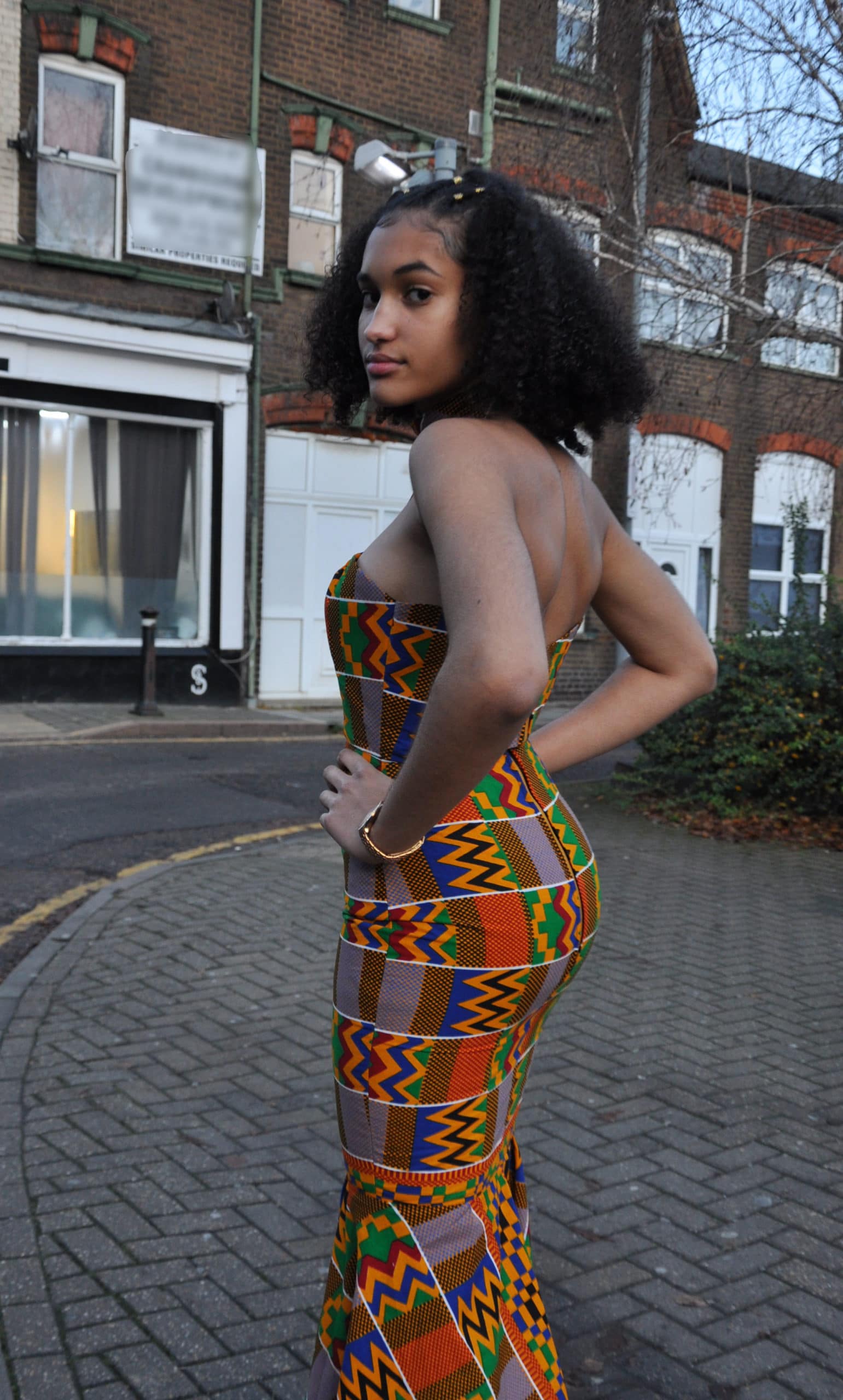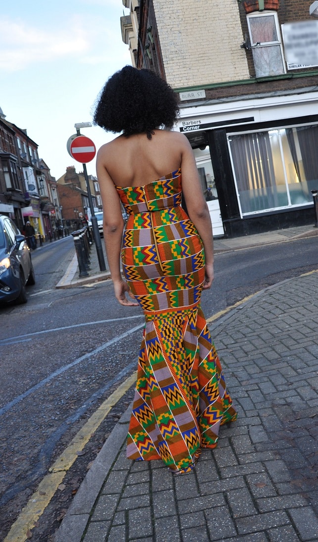 This stunning Kente African Print Fusion Silhouette Dress is the ultimate dress for a special occasion! With vibrant colours, this dress gives you an elegant, sophisticated look.  A perfect choice for an evening dress, prom, cocktail party, ball gown or any special occasion or event. Creates a fabulous silhouette!