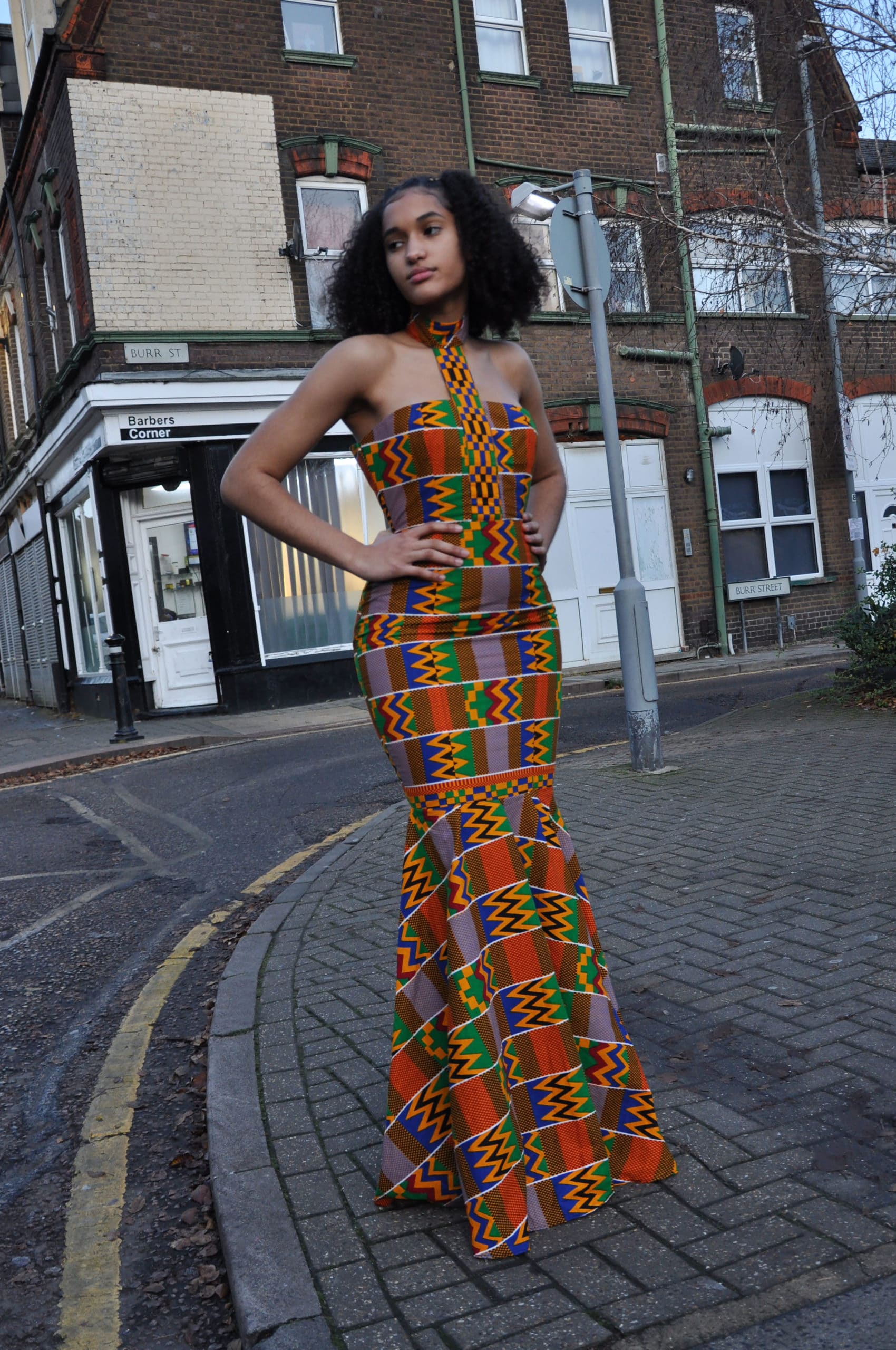 Want to see similar options to this Our Kente Fusion Silhouette Dress? Then check out this other elegant African prom dress by JT Aphrique.