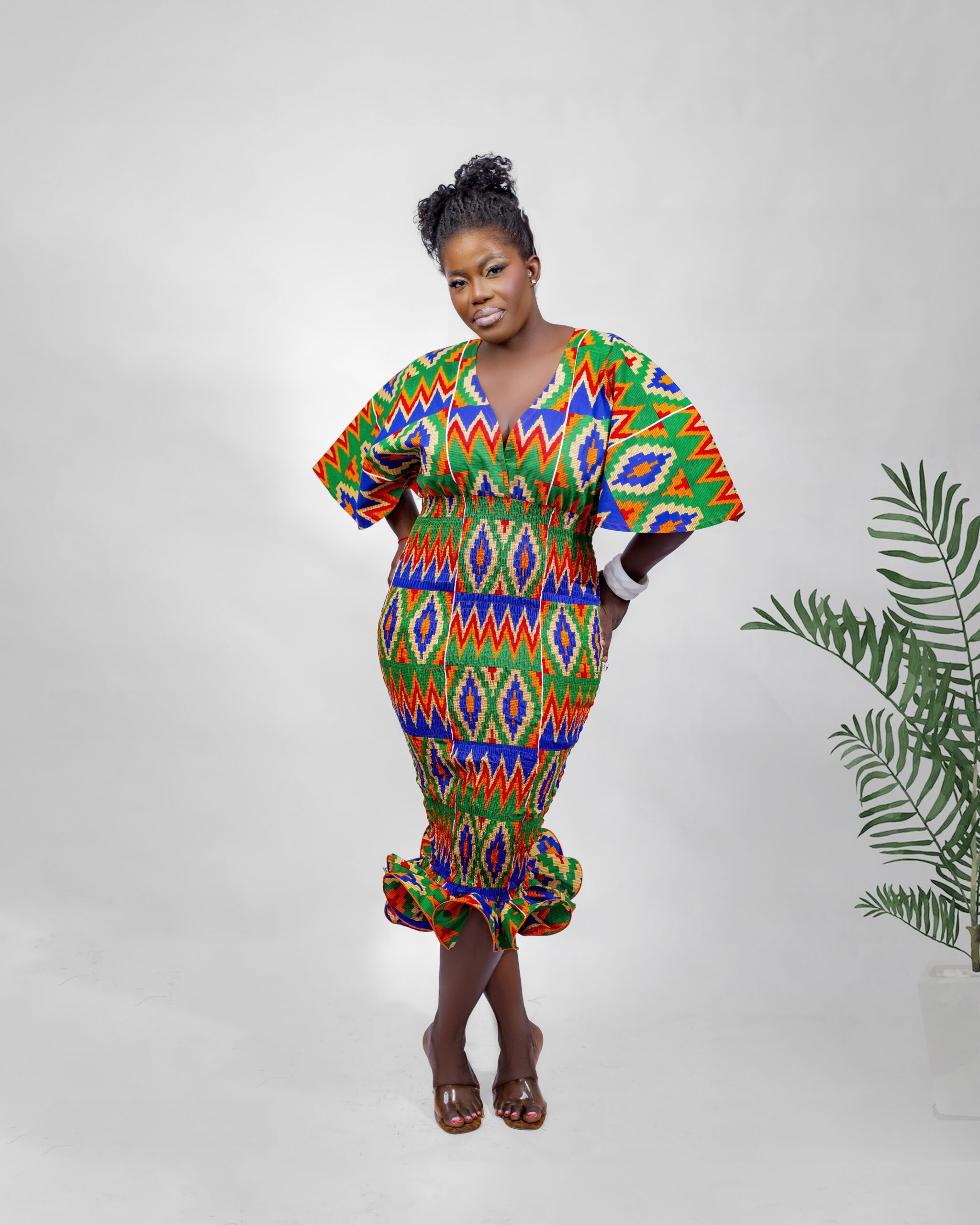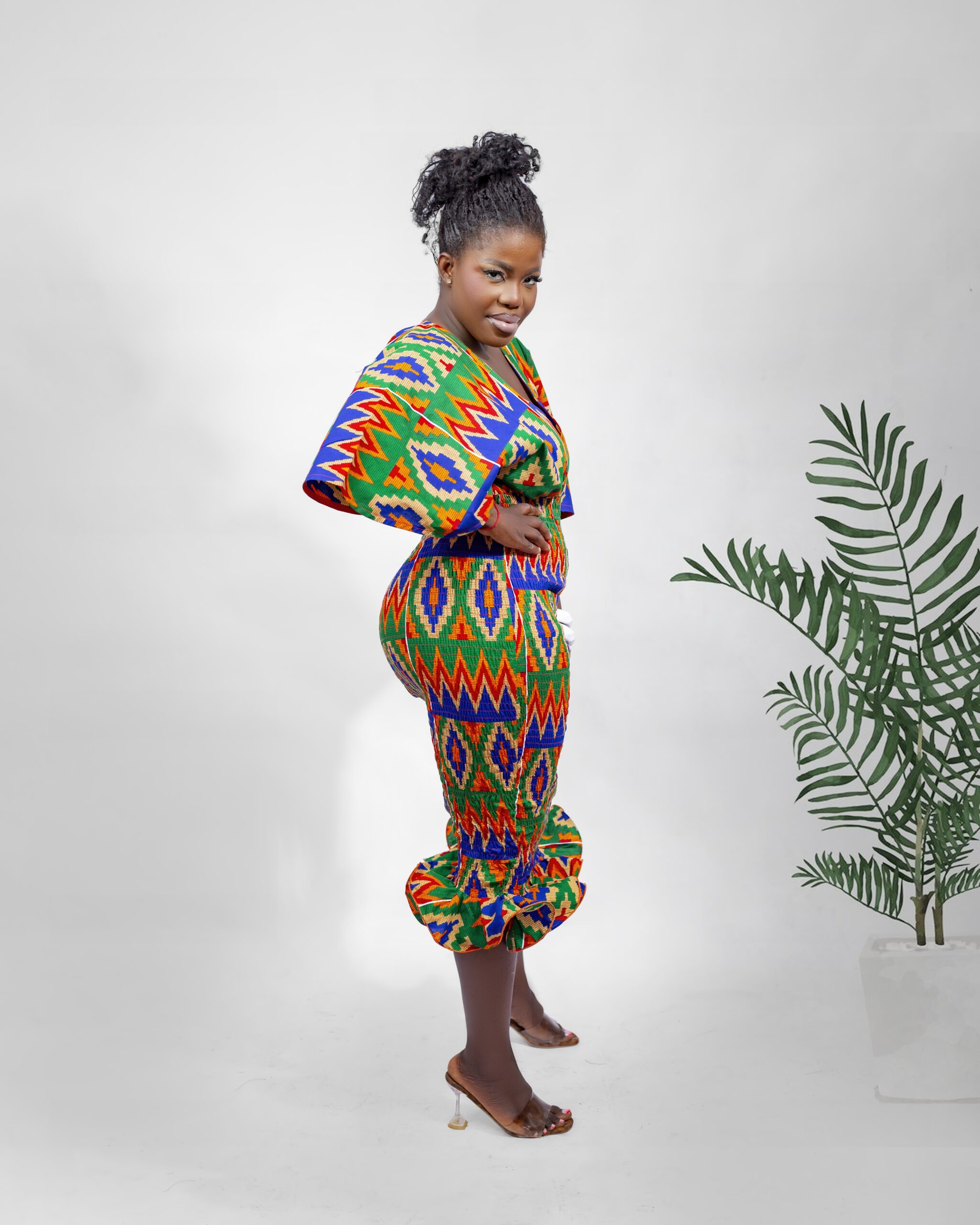 Crafted from 100% breathable cotton Ankara fabric, this dress feels light, soft, and easy to wear. The halter neck design flatters your shoulders and neckline beautifully, while the fitted bodice enhances your shape naturally. In addition, the multi-layered bottom flows gracefully, offering volume and texture without feeling heavy.