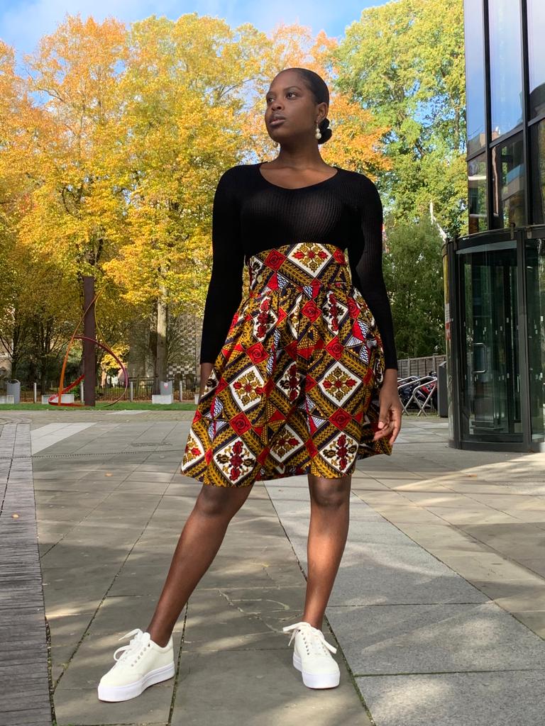 - Details: Ankara High-waisted Skirt, Thick waist line, A-line shape skirt