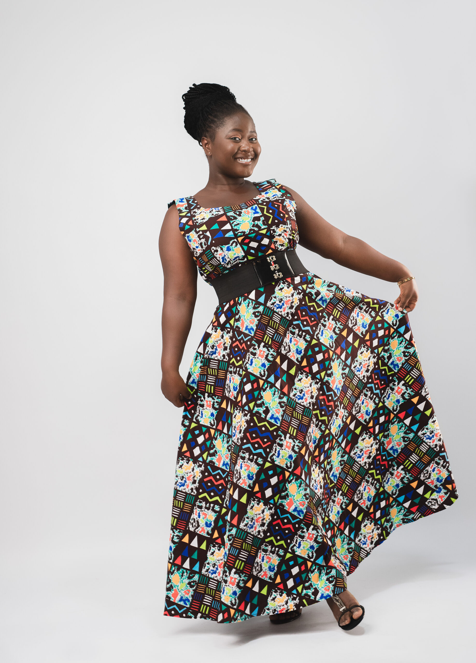 A focal point of this dress is the enchanting ankara print on the modern design. Our Ankara fabric showcases vibrant colors and intricate patterns. Each dress is a unique work of art, reflecting the artistry and creativity of African craftsmanship.