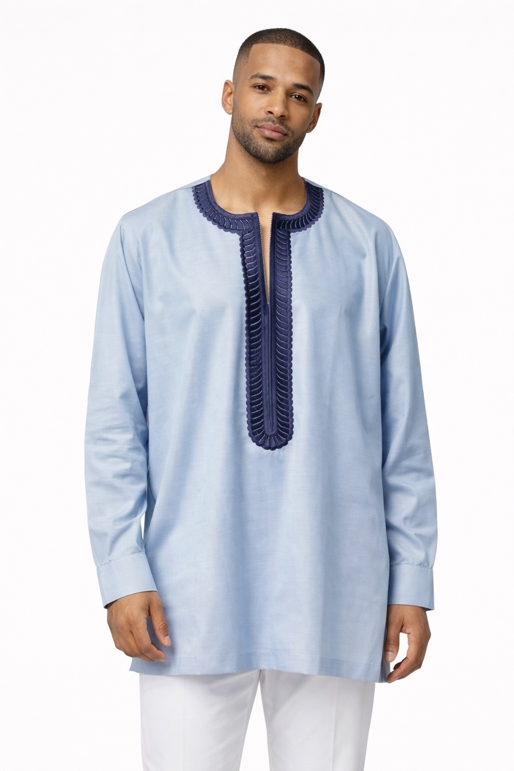Men’s Embroidered Longline Kaftan Top – Light Blue