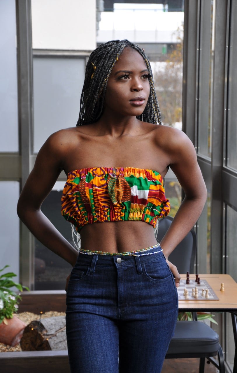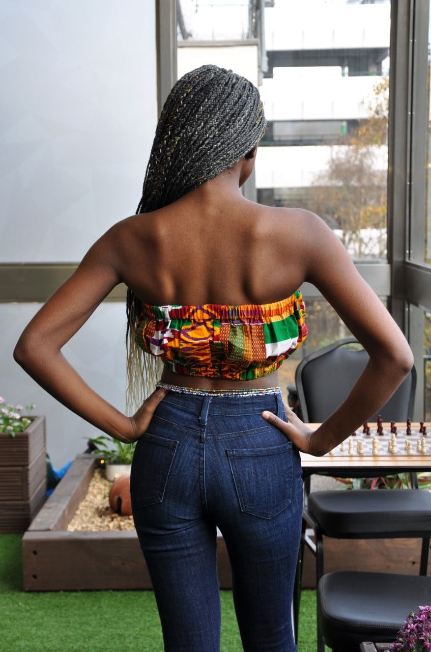 This orange Kente African print bandeau crop top is a perfect match with a skirt or some shorts for the summertime. Pair with our pretty waistbeads and a necklace to bring out the bright colours.