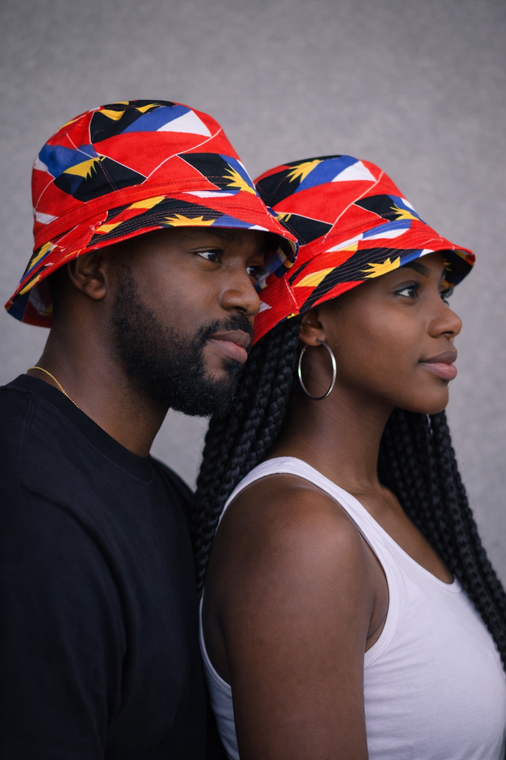 Stay stylish, expressive, and confident with this Antigua Reversible Bucket Hat. It is bold, versatile, and easy to wear. Because of its classic bucket silhouette and vibrant cultural design, the hat delivers both comfort and standout everyday style. It features striking red, blue, white, black, and yellow colours inspired by the Antigua and Barbuda flag, along with sunburst-inspired motifs that symbolise strength, hope, and heritage. As a result, each piece blends cultural pride with a modern fashion edge. The quality stitching and carefully selected fabric also give it a durable and premium finish.