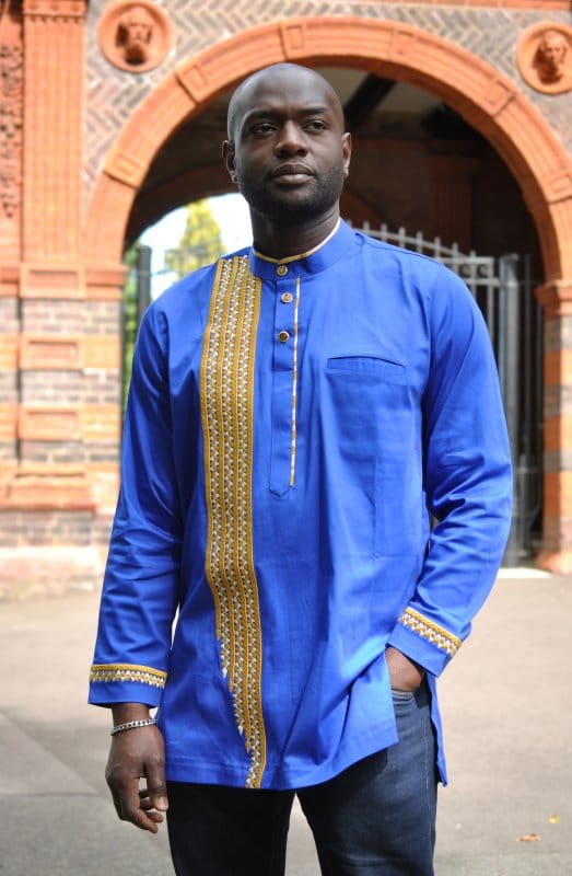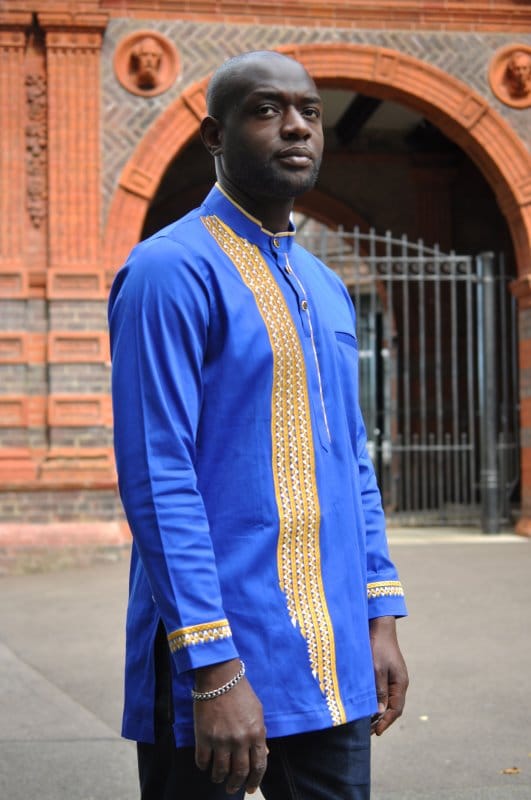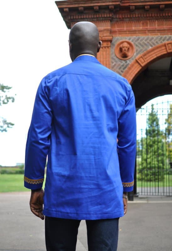This sky blue & gold African embroidery shirt is perfect for special occasions such as weddings or proms etc. The embroidery and the eye-catching design in polished Cotton really finishes the “royal” formal look.