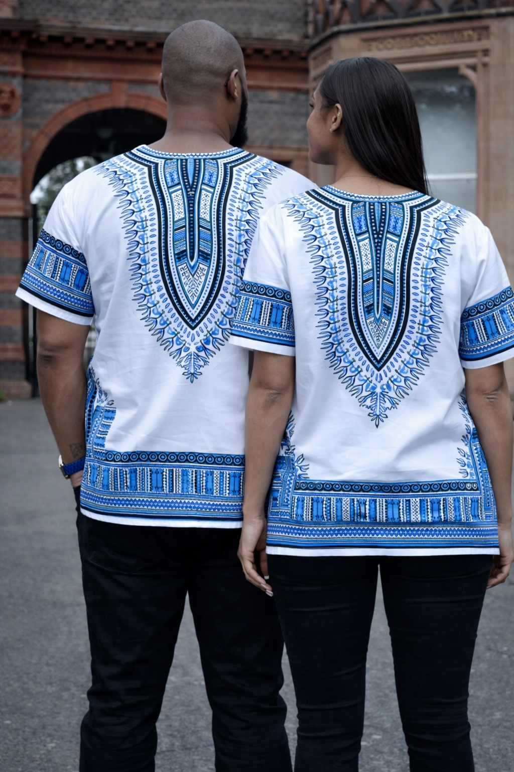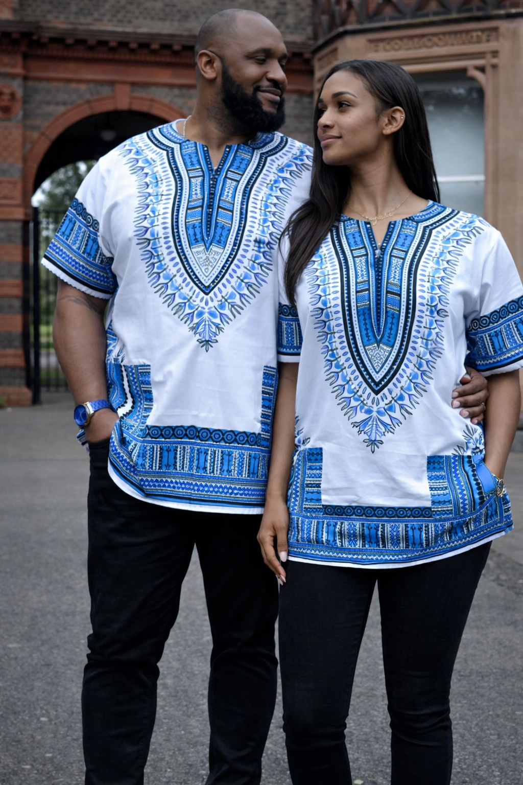 Grab an amazing bargain with this men’s white and blue traditional African dashiki shirt! It is loose-fitting and made from premium quality fabric. Treat yourself or someone special to this fabulous men’s shirt / dashiki. Ideal as a gift for him. Order in many sizes including plus size XXL. Free UK delivery is available and we ship worldwide!