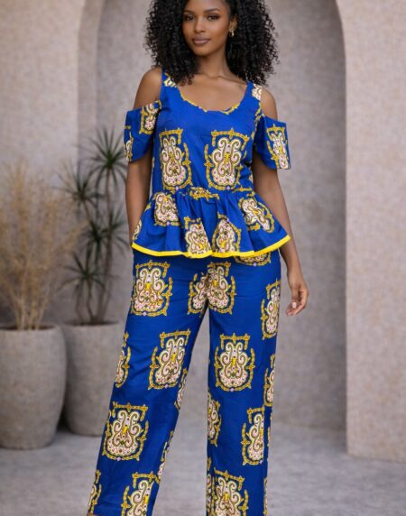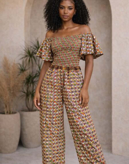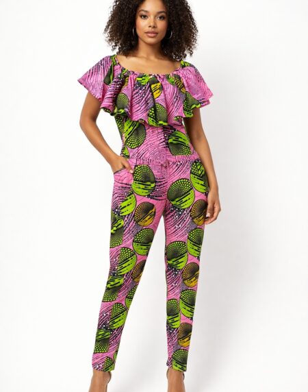 Bold African print jumpsuit crafted from vibrant wax cotton, offering comfort, cultural elegance, and effortless style for everyday wear or special occasions.