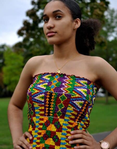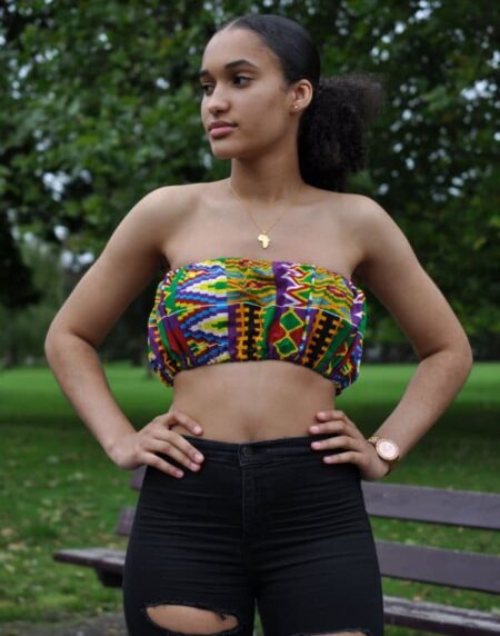 This Kente African print bandeau crop top is a perfect match with a skirt or some shorts for the summertime. Pair with our pretty waistbeads and a necklace to accentuate the bright colours.Purchase as displayed or customise!