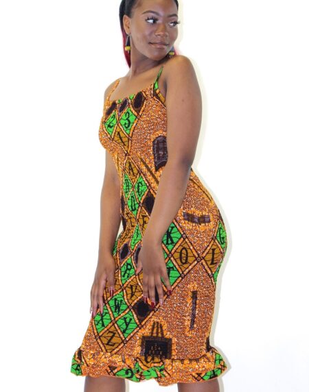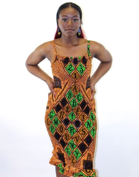 Beauty is nothing without brains. You can have both with this beautiful African Print Strappy Bodycon Dress. Featuring a vibrant alphabet print pattern, this camisole bodycon shape dress can take you from the beach to a lunch with the girls. Traditionally, the alphabet pattern symbolised that the wearer valued education.Â