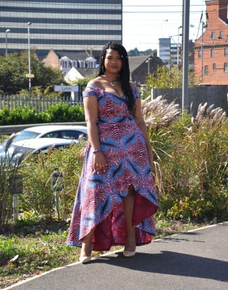 Zara African Bodycon Flare Dress is a beautiful statement piece for your wardrobe. Perfect for any special occasion or African event so the choice is yours. The bodycon fit shows off your curves and the elasticated body adjusts to any body size or shape. Features a stylish cold shoulder and