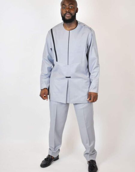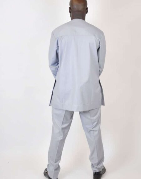 Looking far traditional African wear for a special occasion?  This pale blue men's embroidered suit is perfect! With simple embroidery on the front, this embroidery suit is ideal for special events and functions such as weddings, proms, birthday celebrations and more.