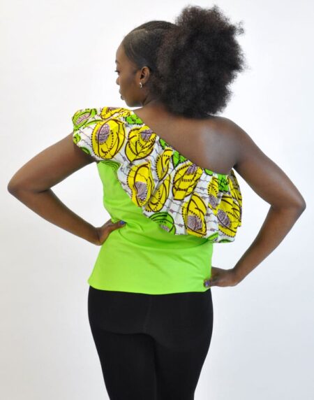 Lime Green One Shoulder African Print Top