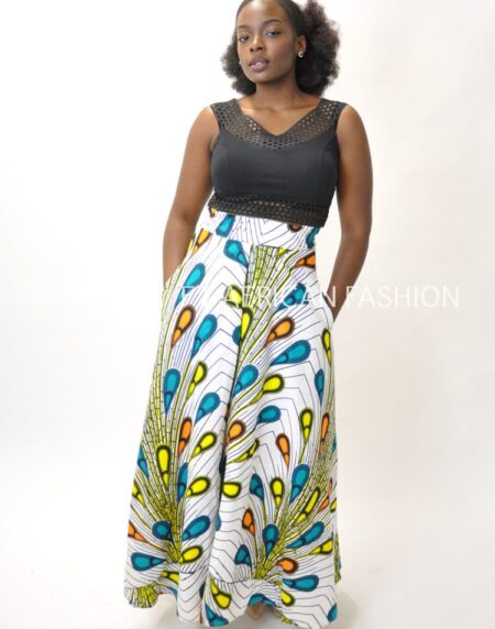 This Beautiful Teardrop Style African Ankara Print Maxi Skirt makes the piece to brighten up any plain outfit . It has a beautiful waistband and has a beautiful pleated style !Please note - due to unforeseen circumstances we are unable to get the same fabric as pictured , please pick a