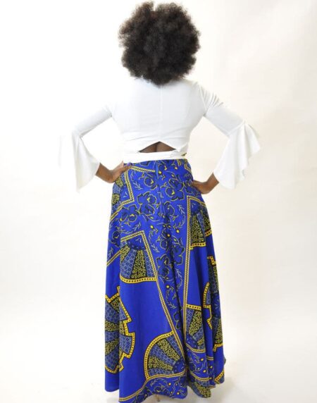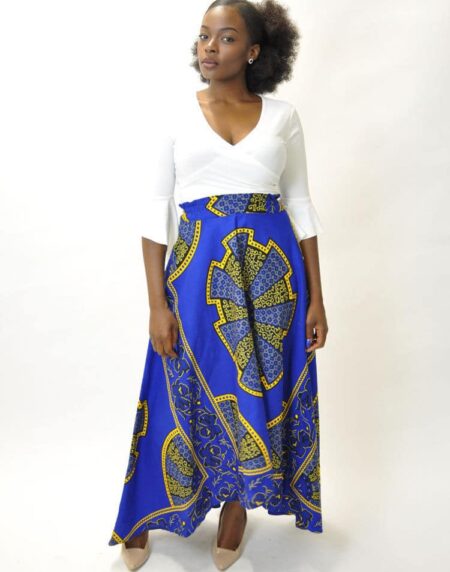 With intricate gold Ankara print set against the cobalt blue background, this skirt is stunning! . This skirt will not let you down!
