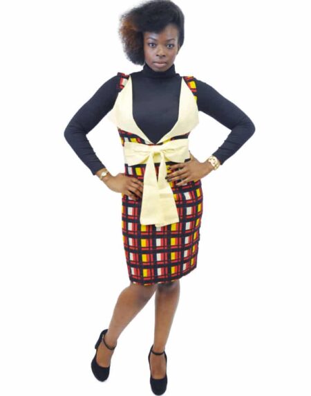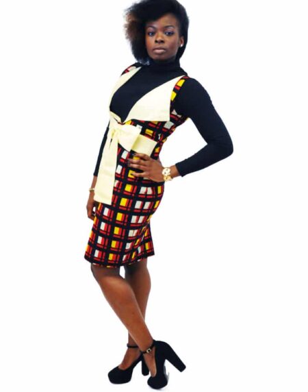 Stand out from the crowd in this unique African print dress! Pair with a contrasting top underneath for impact. In summer, pair with a short sleeved top for a classy vibe. Perfect for a special occasion.
